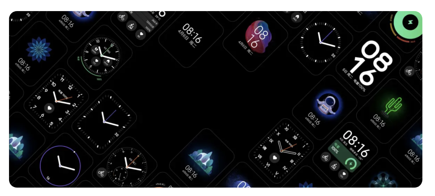 高飽和的熒光色則是 “點睛之筆”。比如小米智能手表的表盤,深灰色底色上用熒光橙做指針、熒光紫做功能圖標,在戶外強光下既能穿透光線,又不會像純白色那樣刺眼。但配色不能貪多,遵循