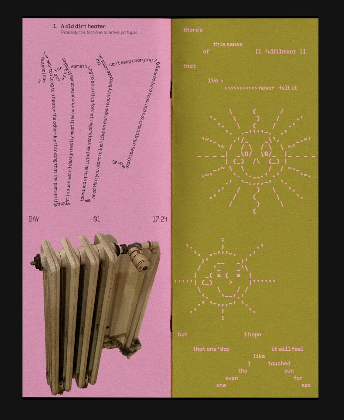 - 生活化主題的情感共鳴:設(shè)計主題多聚焦于細(xì)微日常 —— 舊加熱器、編織桌布、枯萎的花,這些平凡事物通過文字注解與版式烘托,被賦予特殊意義。比如 “這是屬于女孩們的小美好” 搭配柔軟的文字排布,精準(zhǔn)擊中同類情感體驗,讓設(shè)計產(chǎn)生強烈的代入感。