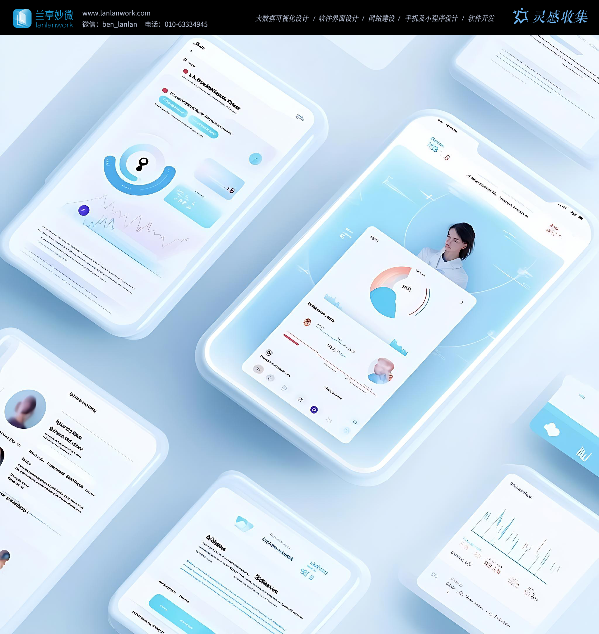 場景適配方面,從生活類應(yīng)用到數(shù)據(jù)可視化、醫(yī)療類界面,均保持了風(fēng)格的統(tǒng)一性。例如醫(yī)療類界面(第四張圖)用淡藍(lán)傳遞專業(yè)感與安全感,數(shù)據(jù)類界面(第三張圖)用薄荷綠體現(xiàn)科技感與活力,在統(tǒng)一風(fēng)格下滿足不同場景的情感與功能需求。