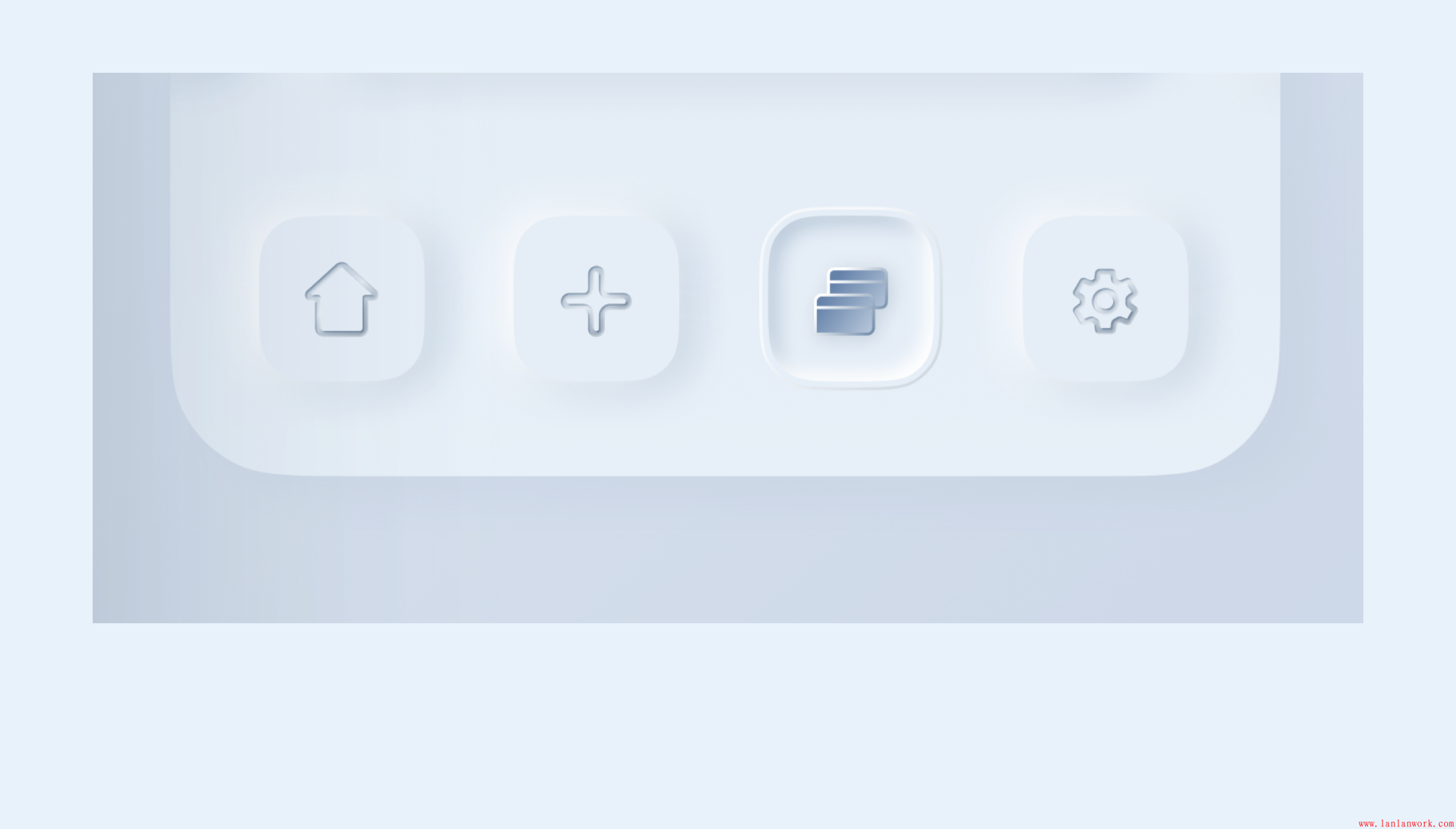 在選中狀態(tài)按鈕的處理,首先是在光源的處理上是統(tǒng)一的,加上光影的處理,就很容易做出來凹進(jìn)去的感覺,想要是凹槽的厚度感、質(zhì)感看起來更加舒服,這里的處理方式和卡片的處理方式原理一樣,添加漸變描邊就可以解決。