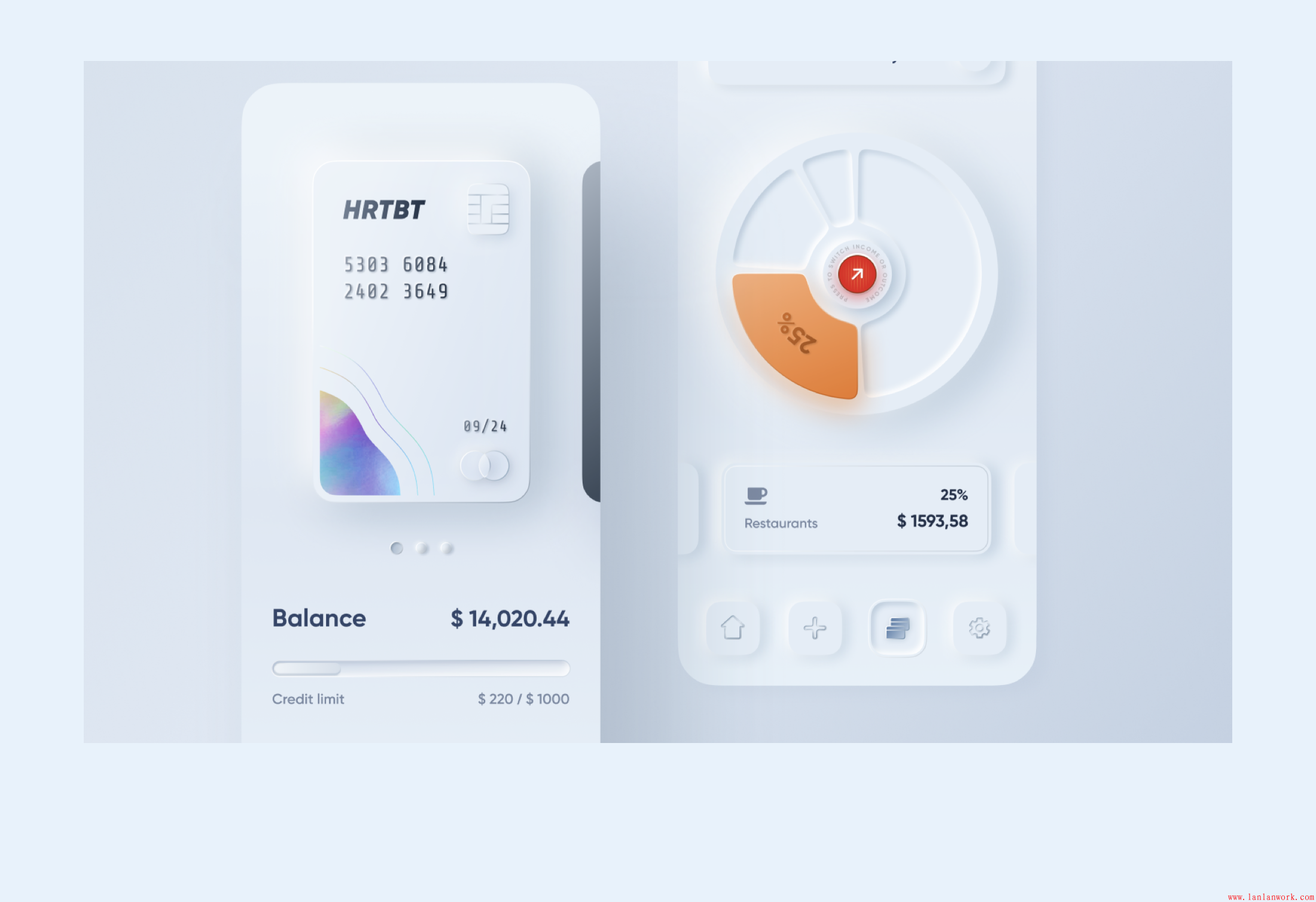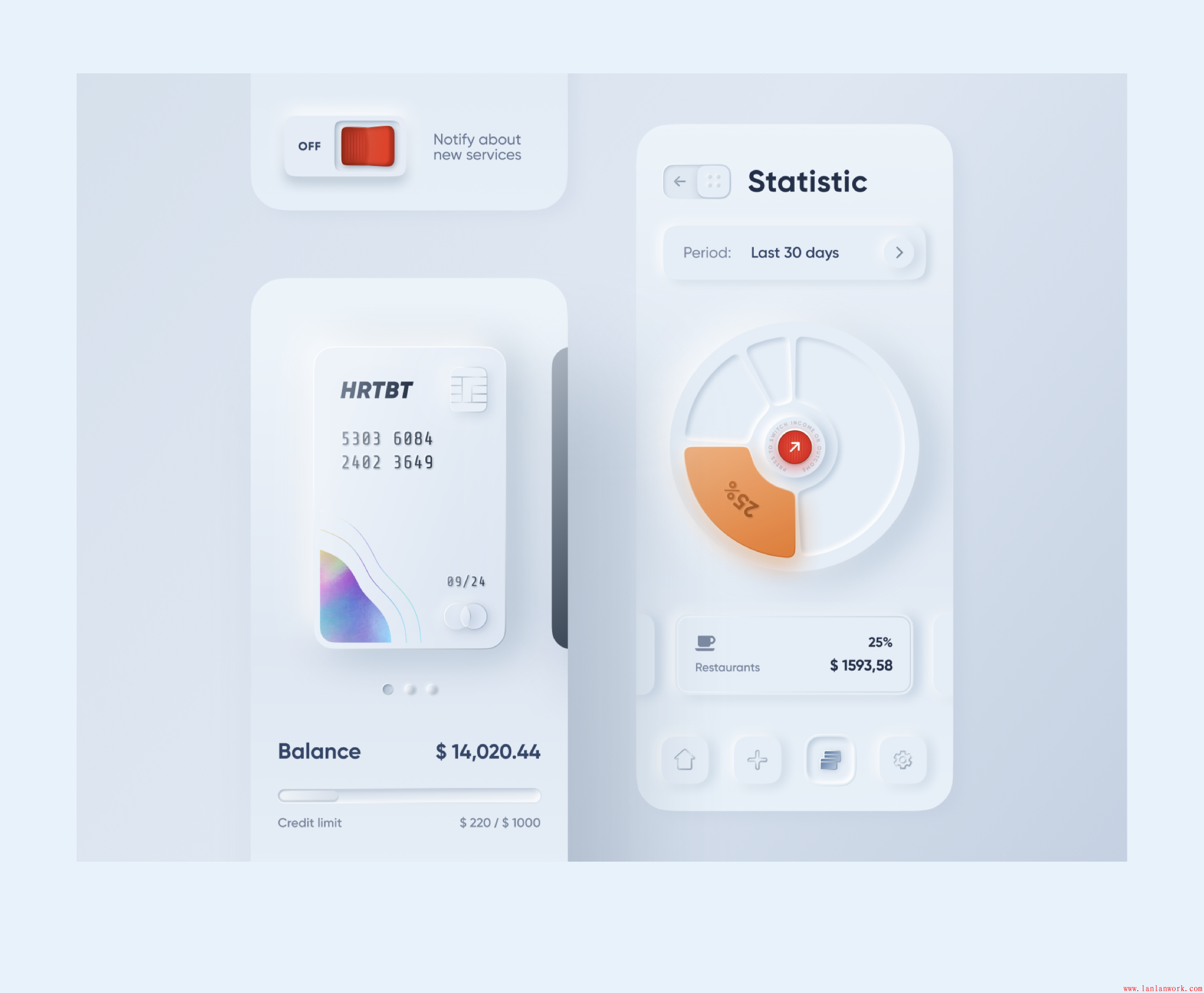 基于這一點(diǎn),其實(shí)我們只要建立好卡片的和按鈕的樣式組件,新擬態(tài)在設(shè)計(jì)層的表現(xiàn)就可以高效率的實(shí)現(xiàn),可能稍微麻煩的就是,在一些質(zhì)感細(xì)節(jié)上做一些優(yōu)化,前面也說到,新擬態(tài)是一種無紋理的擬物風(fēng)。所以想要表現(xiàn)卡片/按鈕的質(zhì)感,在光影、厚度細(xì)節(jié)上,需要做更多的細(xì)節(jié)處理。
